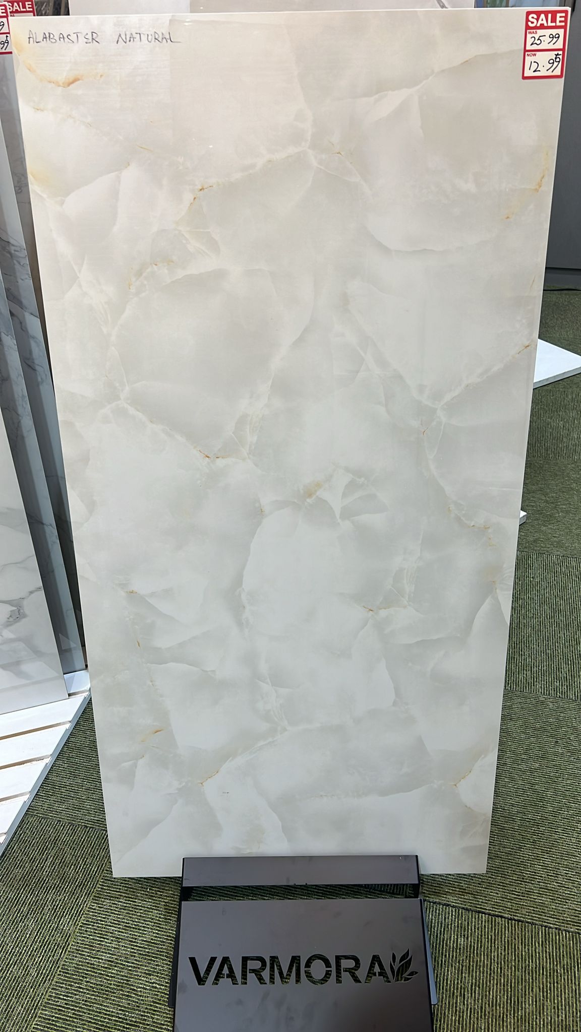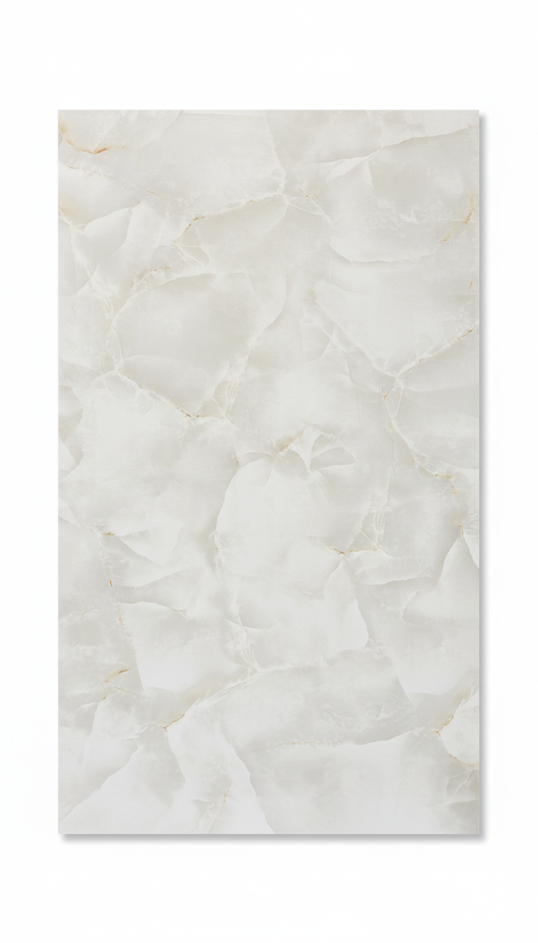 Alabaster Natural tiles showcase soft, warm white tones with subtle veining reminiscent of natural alabaster stone. Perfect for spaces that need brightness and a refined stone feel.